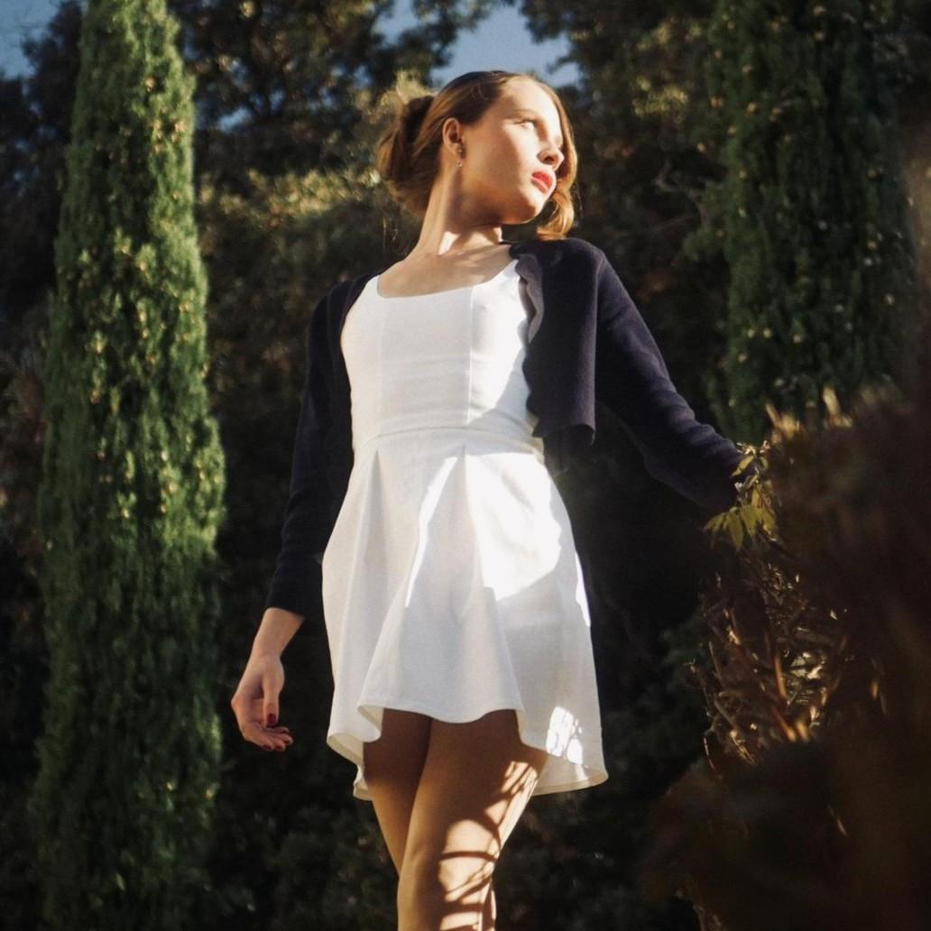 Pièce d’exception signée Maison Garrel, cette robe a été portée par l’actrice Vladyslava dans le court métrage "Azur", en sélection pour le Festival de Cannes 2025. Cette pièce incarne une féminité moderne, lumineuse et assumée. Entièrement blanche, elle dévoile une coupe courte et structurée, pensée pour sublimer le mouvement. La taille est marquée et s’ouvre sur une jupe à plis plats, créant un volume subtil et aérien.